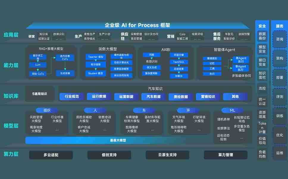 端到端的一站式AI工作空间深度融合了从企业战略规划到日常经营的全流程业务板块,,,定向解决车企内部领域多、、、、部门多、、、、链条长、、、、场景碎片化等难题,,支持车企快速构建以AI为核心的生产力写作体系,,,实现任务执行与AI能力的无缝集成与交互
